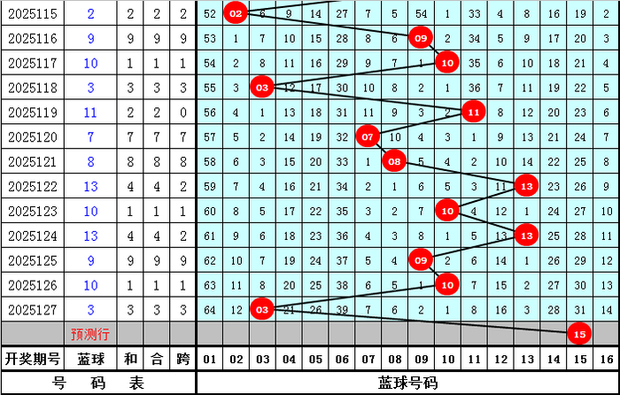 蓝球保举:蓝球上期开出奖号03,为奇数蓝球,本期预测蓝球链接开非常数号码,蓝球参考03、05、06、07、15。