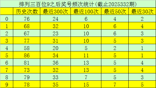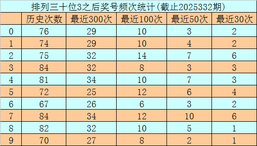 第二位杀号:第二位上期开出奖号为3,该位历史上奖号3开出了766次,最近100挨次二位奖号出现3后,下期落号0-9次数从高到低辩认为:号码2→14次,5、7→12次,0、1、4、8→10次,3、9→8次,6→6次。