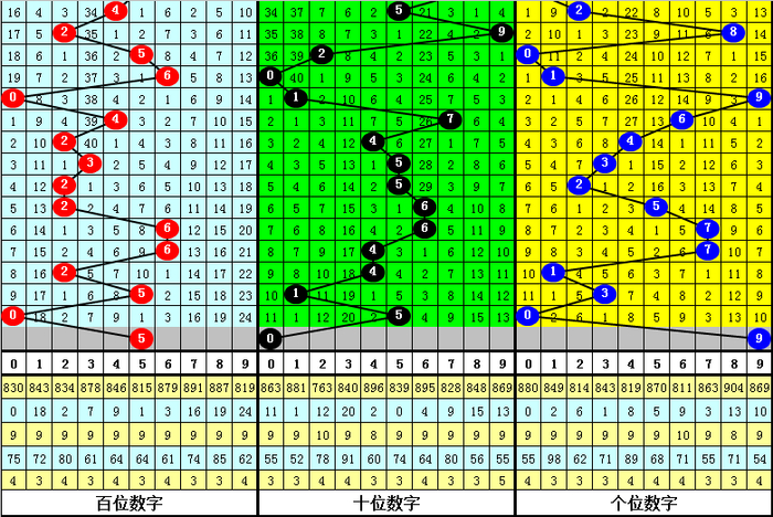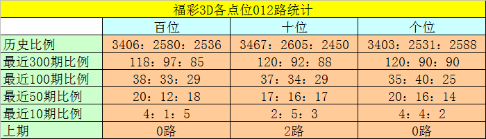 百位分析:该位最近10期开出了4个0路号码、1个1路号码、5个2路号码,2路号码热出,1路号码走冷。本期排斥1路号码,参考号码:5。