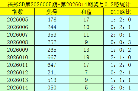 上期回想:福彩3D第2026014期开出奖号:050。奖号为组三款式,与试机号有同号深圳市牛加利科技有限公司,奇偶比为1:2,大小比为1:2,012路比为2:0:1,和值为5,跨度为5。